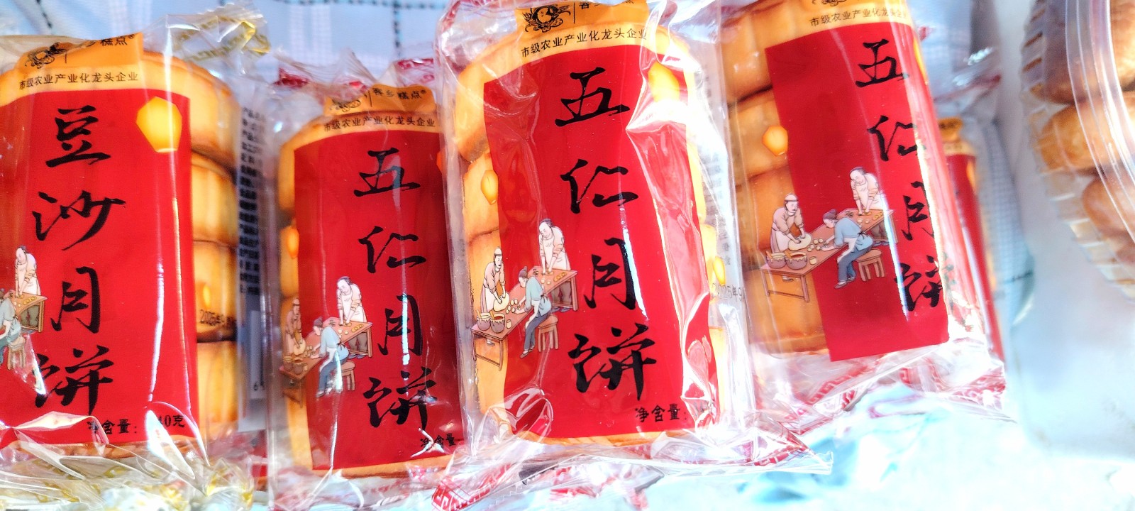 桂东的五仁饼体型硕大,一包四个,寓意四季平安,用红纸精心包裹,圆润如满月,象征人月两圆。走亲访友时,人们必定成双成对地赠送月饼,取“好事成双”的吉兆。