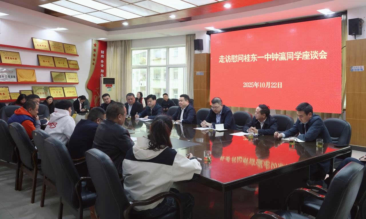 桂东县融媒体中心10月22日讯(记者 钟韬)10月22日,县委书记蔡富强来到桂东一中,走访慰问湖南省第六届中学生运动会田径比赛男子100米金牌得主、年仅16岁的高三年级学生钟瀛。