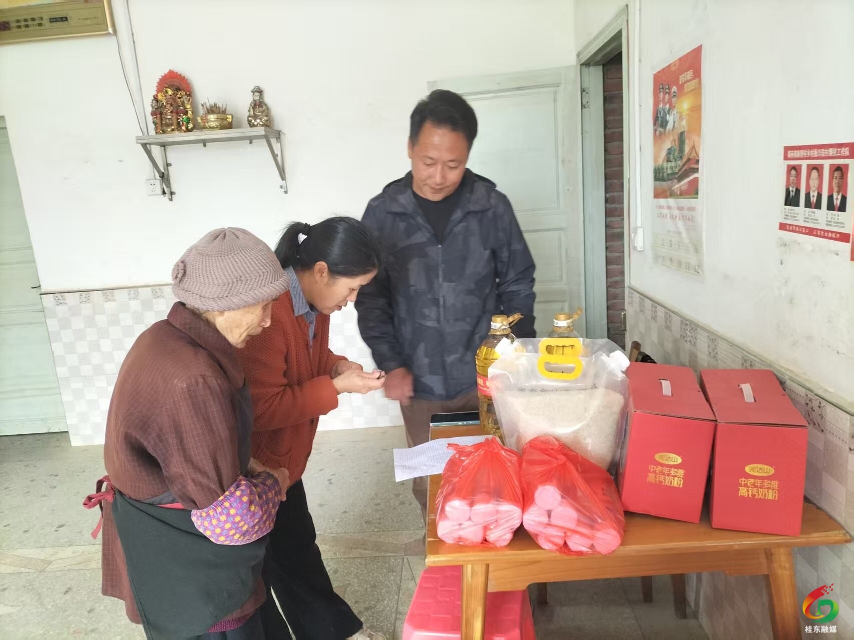 桂东县融媒体中心10月28日讯(通讯员 罗正康)金秋送爽,丹桂飘香,又逢一年重阳近。10月28日,在传统敬老佳节重阳节即将到来之际,桂东县寨前镇新桥村洋溢着格外温馨的氛围,该村连续第五年举行重阳节爱心敬老活动,新桥村“两委”和本土爱心企业家黄永福、朱向军共同筹资2.1万余元,为全村52名80岁以上的高龄老人送上了饱含深情的节日慰问——大米、食用油、奶粉、面条等生活物资,将浓浓的关爱与祝福注入老人们的心田。