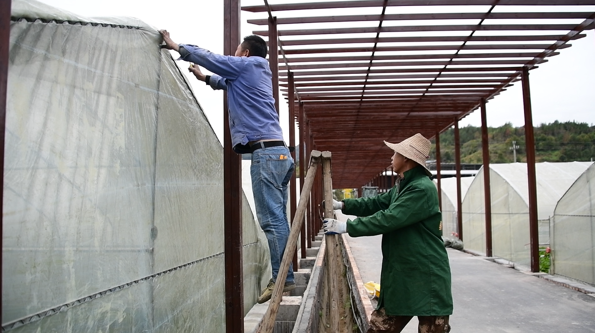 如今正值越冬蔬菜生长的关键期,在槐村村蔬菜农旅产业园内,工人们正紧锣密鼓地为蔬菜大棚搭建棚头、覆盖围膜。通过增强大棚密封性,提高棚内温度,不仅能有效预防冻害,还能确保蔬菜品质和产量,为冬季市场的蔬菜供应提供有力保障。