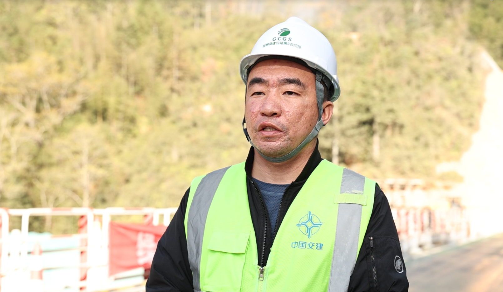 桂郴高速第三合同段项目副经理 李旭:青娥山隧道出口位置紧邻高陡坡且面临河道,项目部专门规划了钢便桥和导洞平台,实现顺利进洞施工。同时,过程中涉及到比较多的协调关系,当地政府给予了我们极大的支持。