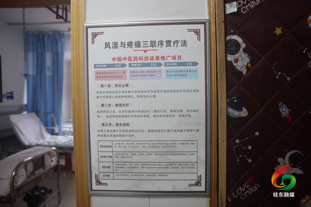 记者在县中医医院疼痛科看到,诊区内坐满了前来就诊的患者。诊室里,主治医师方晔正通过药物定向渗透仪,为一位类风湿性关节炎患者进行精准治疗。一旁的护士同步记录着各项治疗参数。墙上悬挂的“正清风痛宁三联续贯疗法”诊疗流程图,则清晰展示了该疗法的标准化操作步骤。这套融合现代透皮技术与传统穴位理论的疗法,正为各类疼痛患者带来系统性的康复希望。