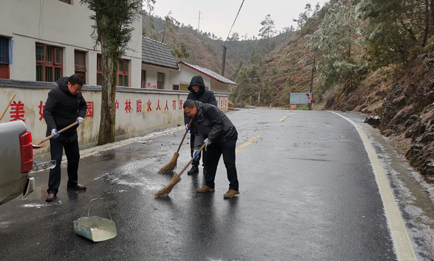 发生应急事故后,八面山管理局(宋坪林场)党委积极应对,党委书记黄志宏、局长陈晓霞深入一线,对安全隐患点进行巡察检查、走访群众并现场调度。同时要求各安全生产网格化管理分片责任人加强地质灾害隐患点排查,发现问题,立即处置;组织党员干部开展除冰去障等行动,解决金银铺组村民因断电造成的照明困难;通过洒盐除冰、清除路面碎石和断树横枝等措施,确保西边山群众和干部职工的生产生活物资安全输送。