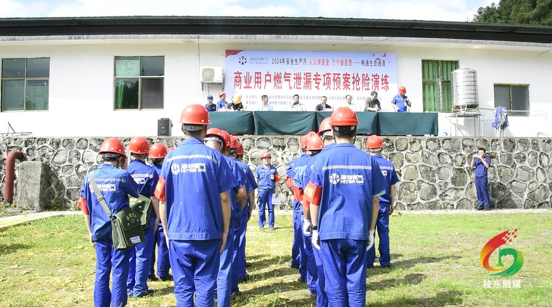 桂东县融媒体中心7月2日讯(记者 廖财银)7月1日下午,由县城管局、应急管理局、市场监督管理局、消防救援大队主办,海特燃气有限公司承办的商业用户燃气泄漏专项预案抢险演练在金洞村海特燃气储备站成功举行。