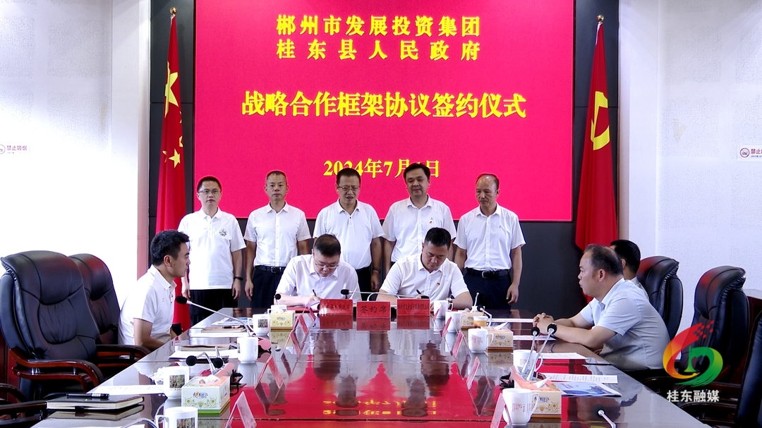 桂东县融媒体中心7月2日讯(记者 钟韬)7月1日下午,我县与郴州市发展投资集团有限公司正式签订战略合作框架协议。县委书记伍志平,郴投集团有限公司党委书记、董事长郭庆锋出席并见证签约仪式。县政协党组书记、主席杨向东主持仪式。