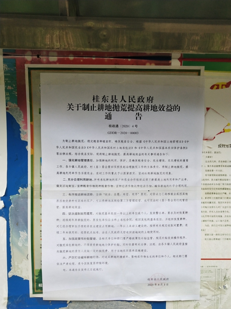 强化宣传引导。为制止耕地抛荒、提高耕地效益,稳定粮食种植面积和产量,根据《中华人民共和国土地管理法》和《中华人民共和国农村土地承包法》有关规定,结合实际,沤江镇人民政府制定了关于防止耕地抛荒的通告。各村通过张贴防止耕地抛荒通告、悬挂宣传横幅、村村响播放、LED显示屏滚动播放等途径,深入开展耕地保护法律法规和国家强农惠农政策宣传,做到政策宣传到村、到组、到户、到田间地头,提高广大群众耕地保护意识。加大对违法占用、破坏地行为的打击力度,明确对连续二年抛荒的村集体可与耕地承包经营户终止承包合同,依法收回耕地承包的经营权。广泛的政策宣传让抛荒治理政策家喻户晓,积极鼓励广大农民翻耕复垦,形成珍惜土地的强大舆论氛围。