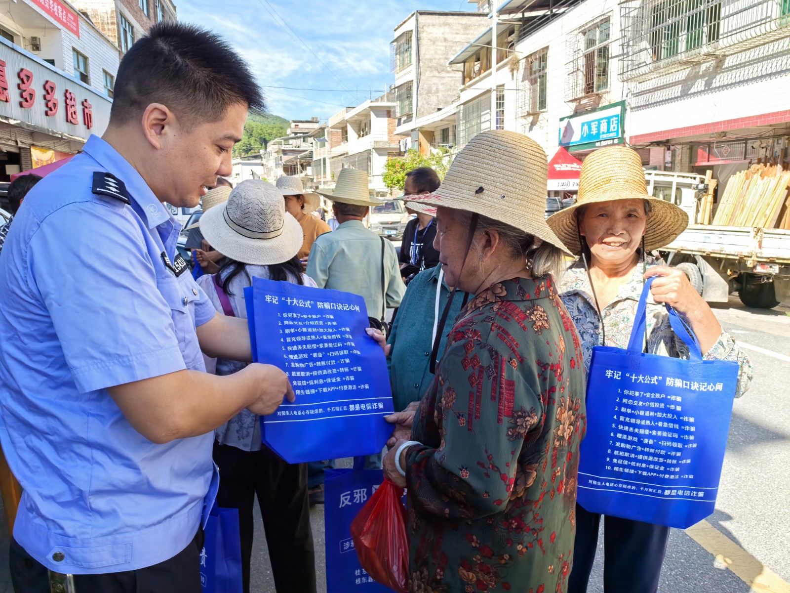 桂东县融媒体中心9月17日讯(通讯员 张归归 方桂嫔)9月16日,桂东县新坊乡联合寨前工商所、大塘派出所,在热闹的集市上共同开展防范诈骗宣传活动,以部门联动的形式,为群众筑牢财产安全“防护墙”。