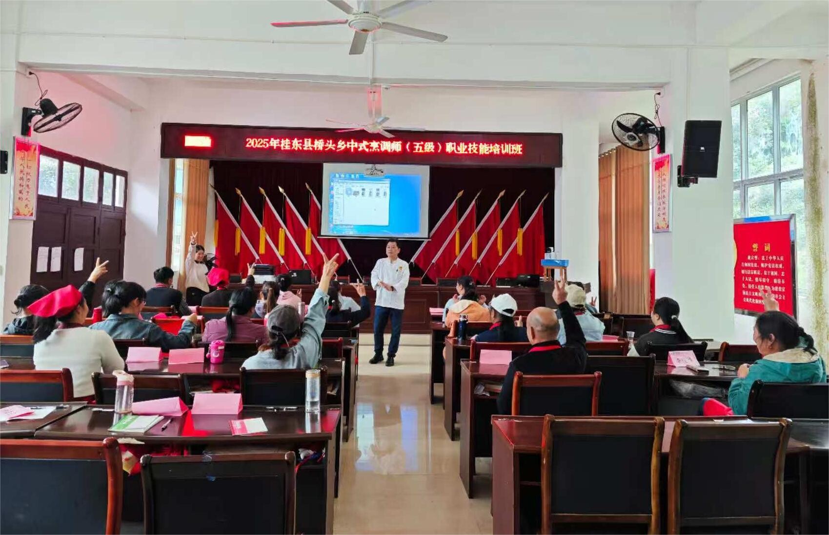 近年来,桥头乡以“两叶一竹”(茶叶、粽叶、楠竹)为核心,创新推出茶香、粽香、竹香、腊香、土香、客家小吃和特色饮品七大美食体系,打造“游在桂东,吃在桥头”品牌。2025年,该乡获评“客家美食之乡”称号。为助推美食产业发展、加强专业人才储备,桥头乡党委政府联合县人社部门,共同组织了为期12天的厨师技能培训,邀请郴州市真诚职业培训学校专业人员授课。
