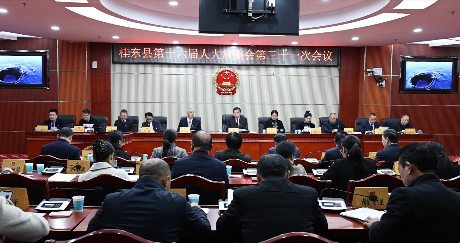 会议听取和审议桂东县2024 年度政府债务管理情况的报告、桂东县人民政府关于审计查出问题整改情况的报告,审议通过了关于接受黄曙光同志辞去第十六届人民代表大会代表职务的决定草案、关于补选县十六届人大代表有关事项的决定草案,审议了关于提请决定召开桂东县第十六届人民代表大会第五次会议的议案、桂东县第十六届人民代表大会第五次会议邀请列席人员范围。