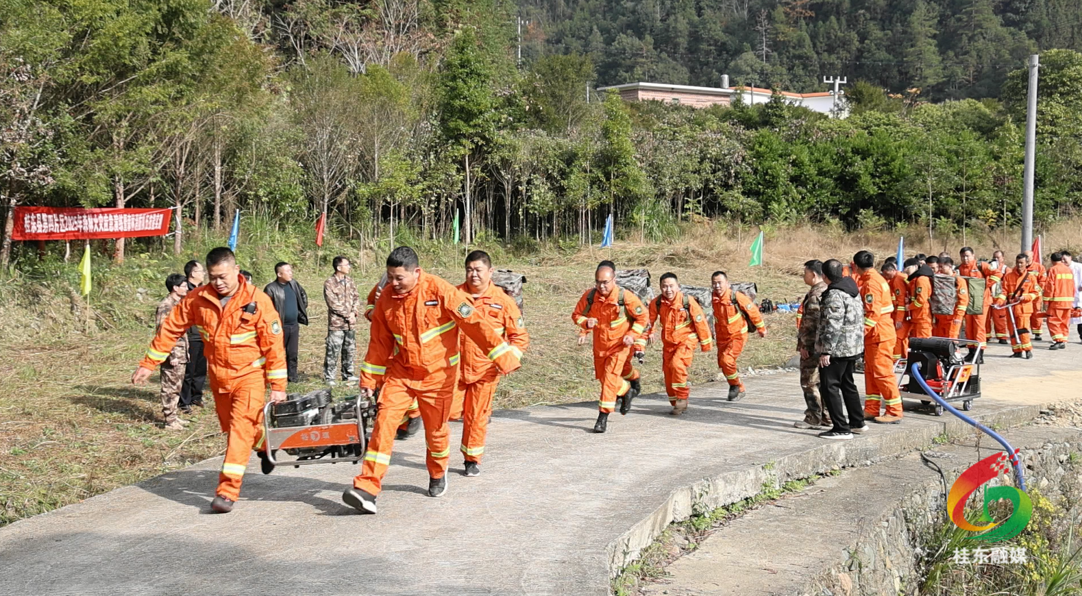 桂东县融媒体中心12月5日讯(记者 李涛 通讯员 崔健)为全面提升区域森林消防协同作战能力,筑牢森林安全防线,12月4日,第四片区湖南八面山国家级自然保护区管理局(宋坪国有林场)、四都镇、青山乡联合开展森林消防应急演练。县级领导黄志宏、陈晓霞到场观摩指导。