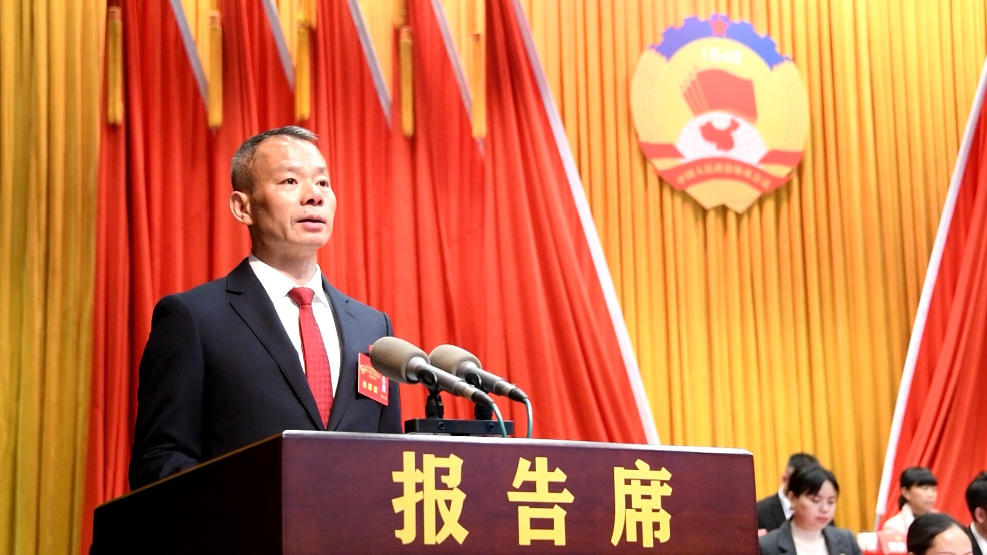 县委书记蔡富强,县委副书记、县长尹建恒,县领导李攀、周国栋、杨向东、扶秀娟、黄守为、张友鸿、陈志东、扶敏兰、黄梦军在主席台前排就座。在主席台就座的县级领导还有龙彪、郭远飞、张焱康、陈宁、李书鸿、曹搡、陈晓霞。