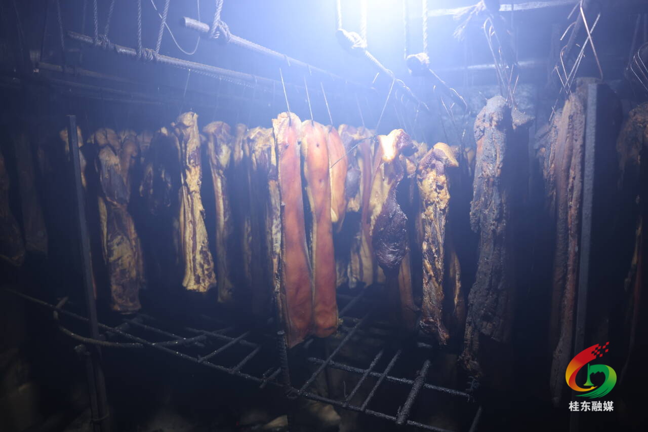 走进青山乡彩洞村邓丽萍家的小院,一幅充满烟火气的丰收图景映入眼帘——一串串刚出熏房的腊肉整齐悬挂在晾架上,供慕名而来的客人挑选。冬日暖阳洒落,油润的肉质泛出琥珀般的光泽,微风拂过,浓郁醇厚的咸香扑鼻而来。这方不大的院落,既是她坚守瑶家传统手艺的“匠心工坊”,也是通过镜头联通山外世界的“助农窗口”。每一块腊肉,都凝结着时光的沉淀与手作的温度。