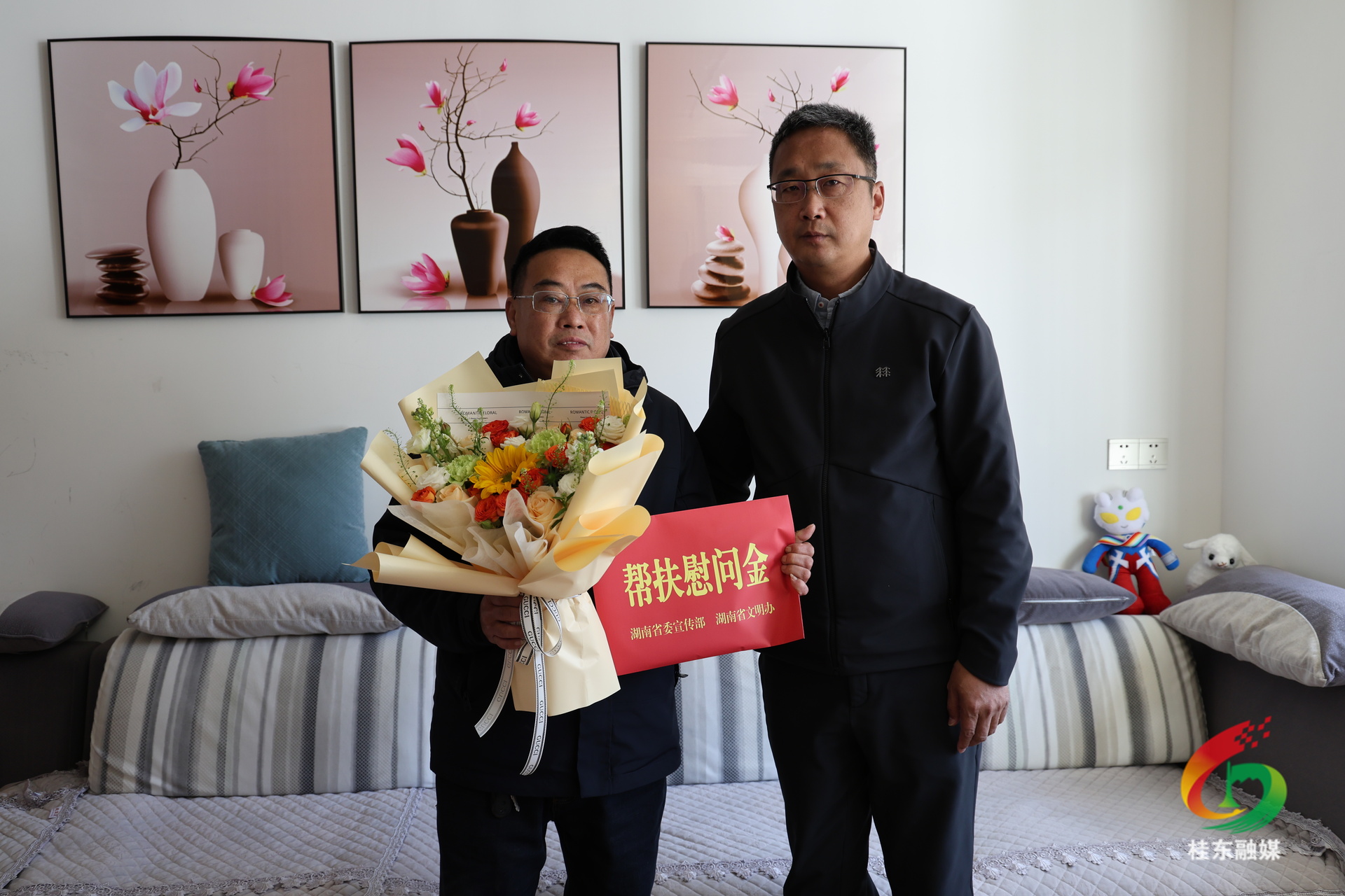 桂东县融媒体中心2月2日讯(记者 钟凤侣)春节将至,关怀暖心。2月2日,省委宣传部二级巡视员、出版处处长张云峰一行专程来到我县,走访慰问省道德模范方璇的父母,为他们送去党和政府的温暖关怀以及新春的美好祝福。省委宣传部文明创建处三级调研员刘英一同参加慰问。