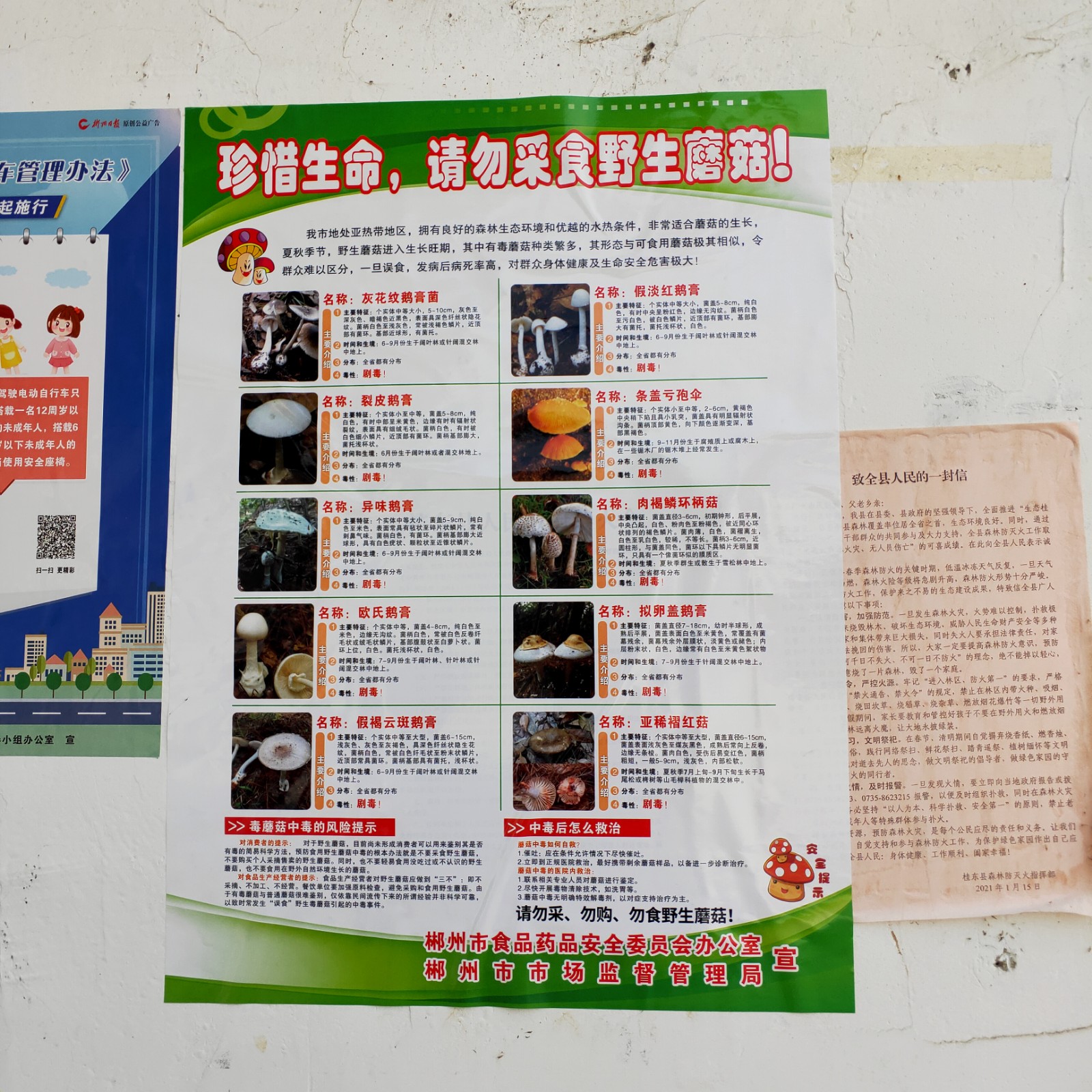 桂东县融媒体中心7月1日讯(通讯员 柳欢 方步娟)随着野生菌陆续上市,为有效预防野生菌中毒事故的发生,切实保障广大人民群众饮食安全,近日,新坊乡及时采取有效措施,切实开展预防野生菌中毒防控宣传。