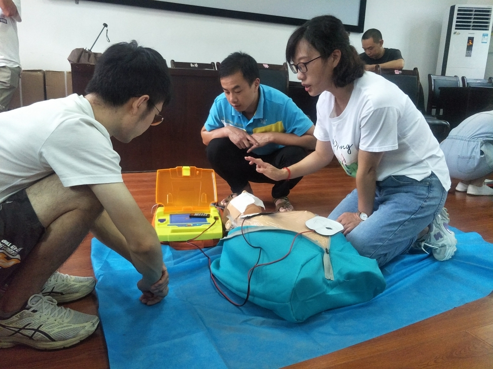 此次培训邀请到中南大学湘雅二医院精神卫生研究所主治医师和县人民医院相关科室主任、主治医生,主要围绕心理减压、心肺复苏、AED+气道异物梗阻、创伤四项技术(止血、包扎、固定、搬运)等内容展开,培训导师们详细讲解了相关急救理论知识,对心肺复苏及外出血救护、气道异物梗阻救护进行了逐一演示,并当场开展现场教学,手把手教学员急救步骤、施救手法、操作要点和注意事项。在培训导师们倾心、认真、细致、耐心的教学下,镇干部职工、卫生院医护人员、各村社区村医以及其他兴趣爱好者开展实战模拟,并参加了相应理论和实操考核,培训导师给考核合格的学员颁发“现场救护——第一目击者”电子证书。