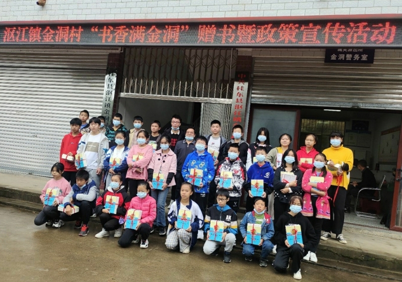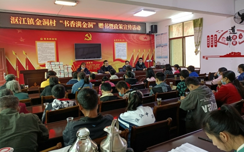 桂东县融媒体中心11月8日讯(通讯员 常人杰)11月7日,沤江镇金洞村成功举办了“书香满金洞”赠书暨政策宣传活动,活动围绕金洞村全日制初中阶段学生,采取政策宣讲、经验分享、书籍发放等形式,通过“小手拉大手”及家长的带动,使党的涉农、乡村振兴等政策家喻户晓。