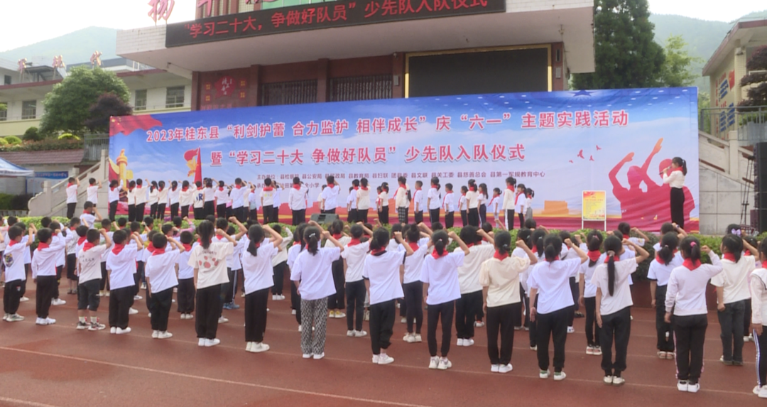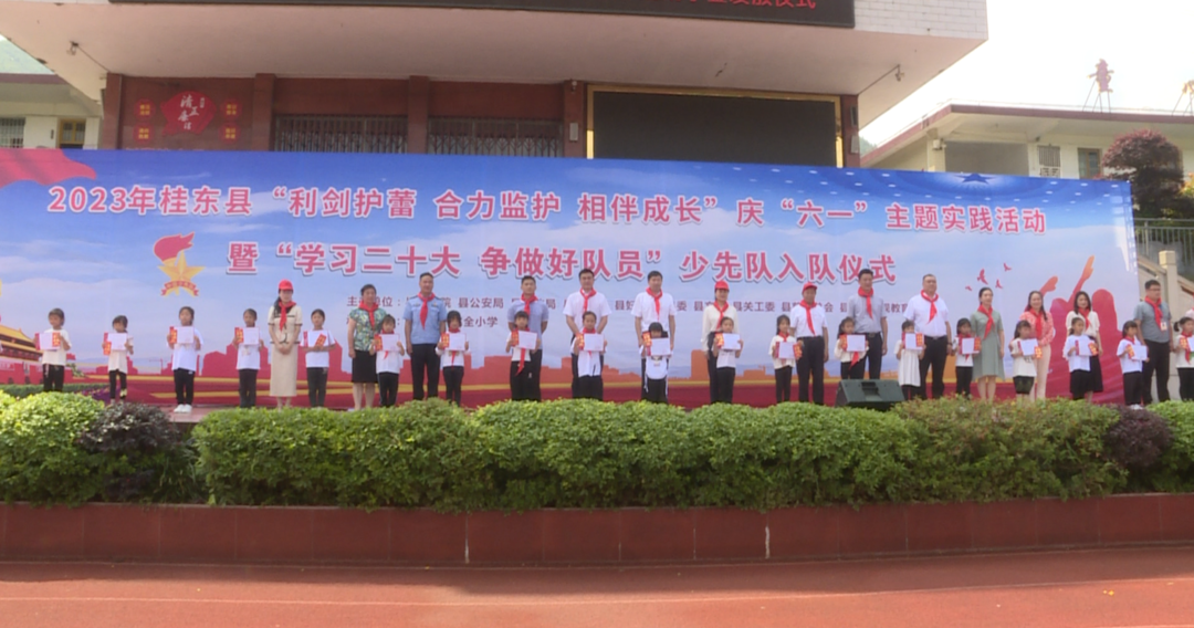 桂东县融媒体中心6月1日讯(记者 李涛)6月1日,我县在沙田一完小举办“利剑护蕾 合力监护 相伴成长”庆“六一”主题实践活动暨“学习二十大 争做好队员”少先队入队仪式。县领导杨飞、邝英健参加活动。