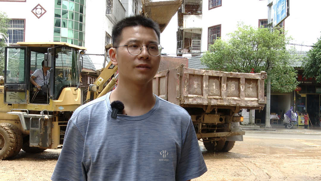 县城管局党组成员、副局长黄佳成:县城管局严格落实值班值守制度,认真排查风险隐患,昨晚出现汛情以来,我们出动机动作业车辆十余辆,工作人员30余人,现在正在进行清淤清理工作,下一步我们将联合有关部门进行大清洗大消杀等工作。