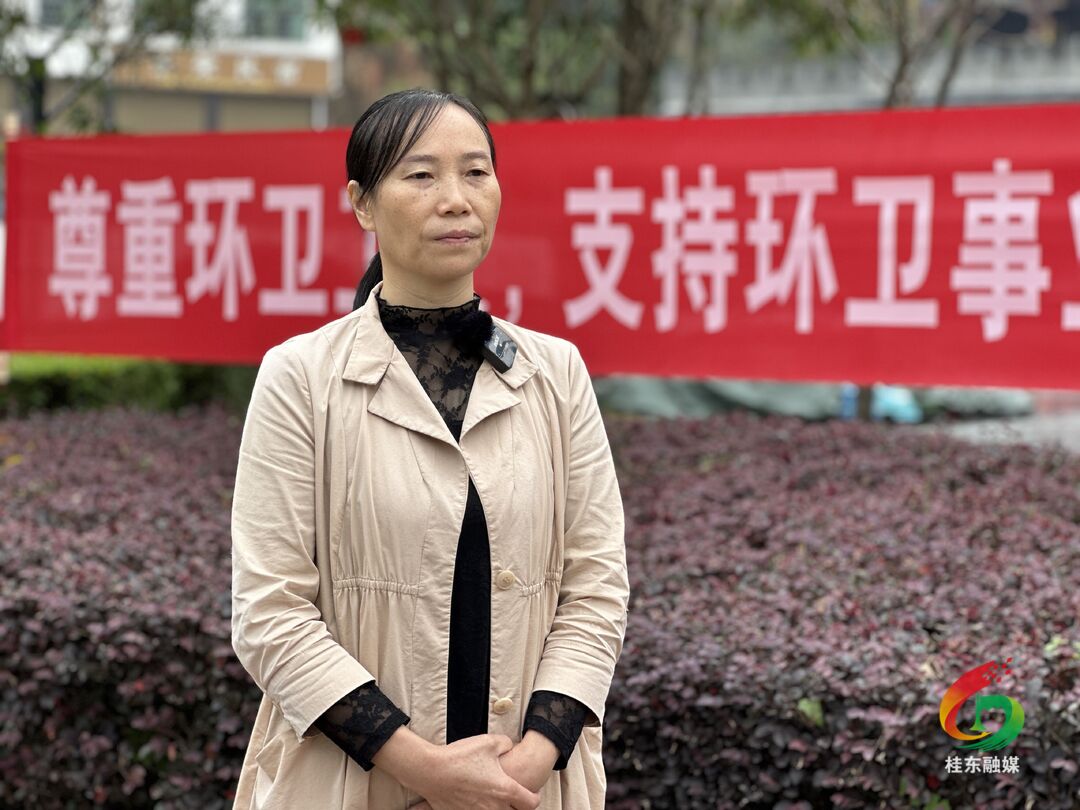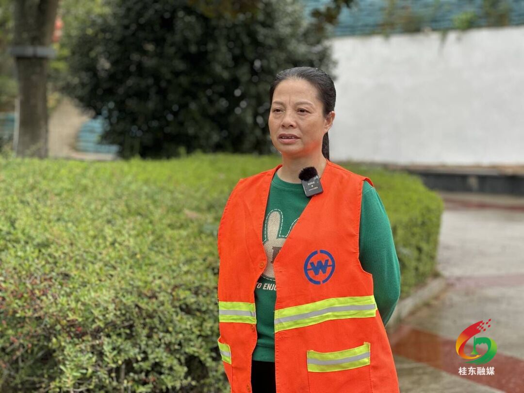 环卫工李顺莲:我们环卫工人虽然很辛苦,起早贪黑,风里来雨里去,但我们作为“城市美容师”,能为我们的县城服务,我们感到很自豪。