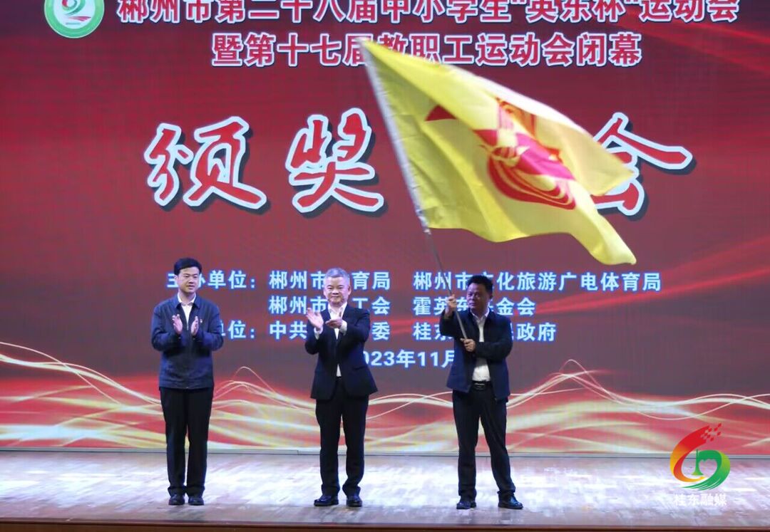 桂东县融媒体中心11月5日讯(记者 钟卓文 邓敏 通讯员 刘颖)11月4日晚,郴州市第二十八届中小学生“英东杯”运动会暨第十七届教职工运动会闭幕式颁奖晚会在我县影剧院举行。市政协党组书记、主席陈跃文宣布闭幕,县委书记伍志平致辞。