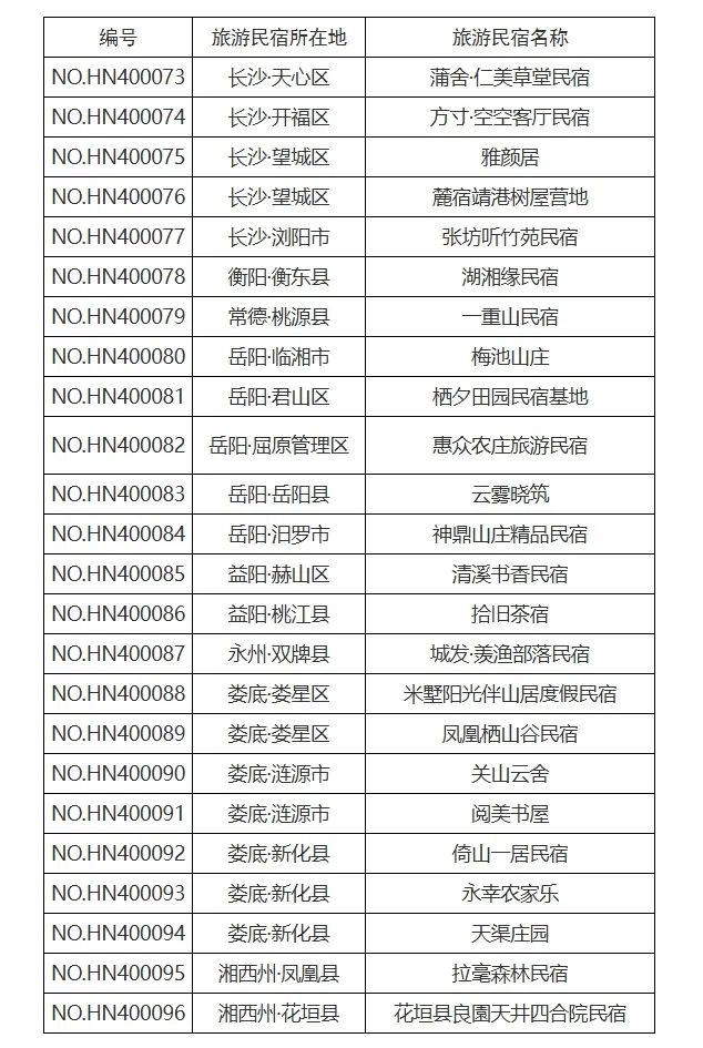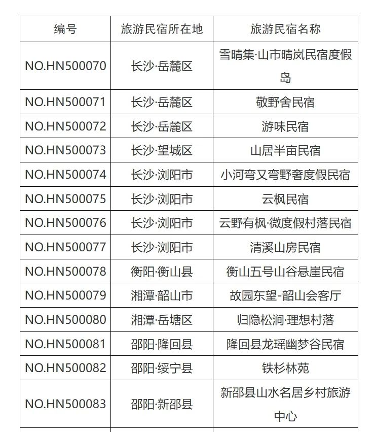 8月18日,湖南省旅游民宿等级评定委员会发布关于2025年省五、四星级旅游民宿的公告。根据湖南省地方标准《旅游民宿等级划分与评定》(DB43/T 2361-2022)和《湖南省旅游民宿等级评定管理办法》,雪晴集·山市晴岚民宿度假岛等29家旅游民宿符合湖南省五星级旅游民宿标准,蒲舍·仁美草堂民宿24家旅游民宿符合湖南省四星级旅游民宿标准