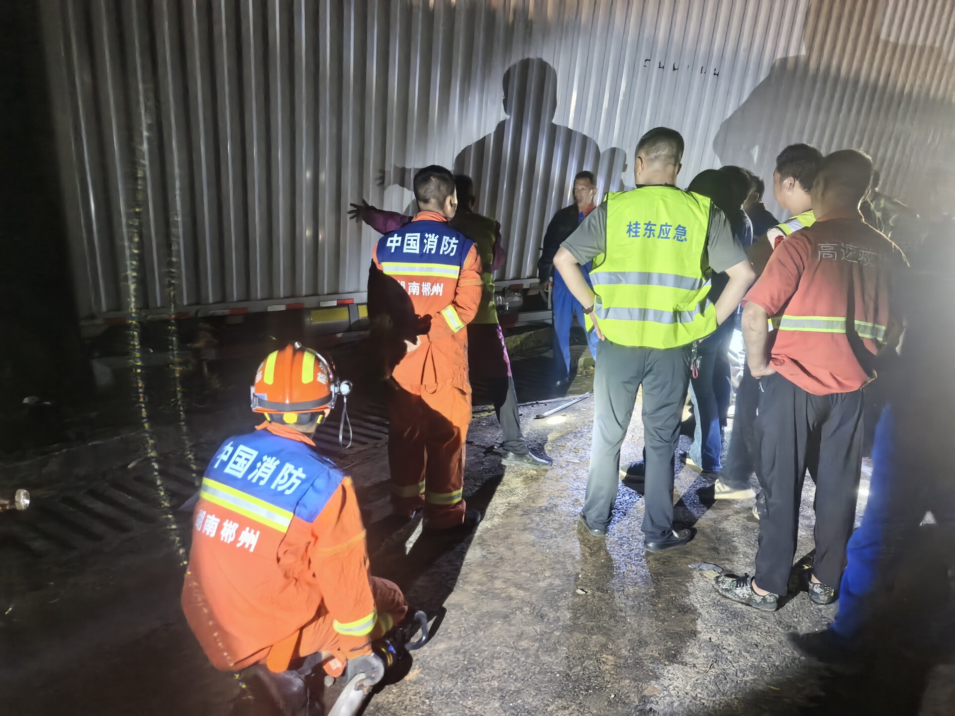 桂东县应急管理局接报后,高度重视、迅速行动,立即启动应急响应,联合高速交警、消防、城管燃气救援分队等力量赶赴现场。救援团队设立2公里警戒区引导车辆,消防人员对储罐喷水降温,燃气分队实施堵漏降压作业。