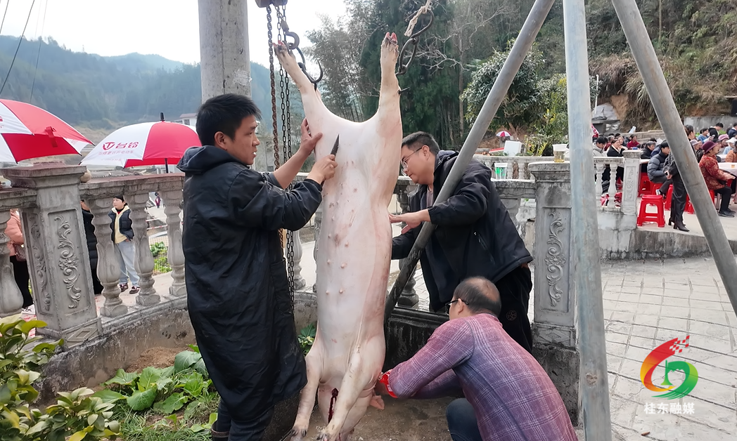 桂东县融媒体中心1月16日讯(记者 吴珊华 邓敏 马俊楠)年味不必待春节,寨前冬月已飘香。1月16日,寨前镇白竹村一场别开生面的年猪宴火热开席,乡亲邻里、远方游客欢聚一堂,共同按年猪、品乡宴,在热气蒸腾的烟火气中,沉浸式感受传统年俗的质朴与温情。