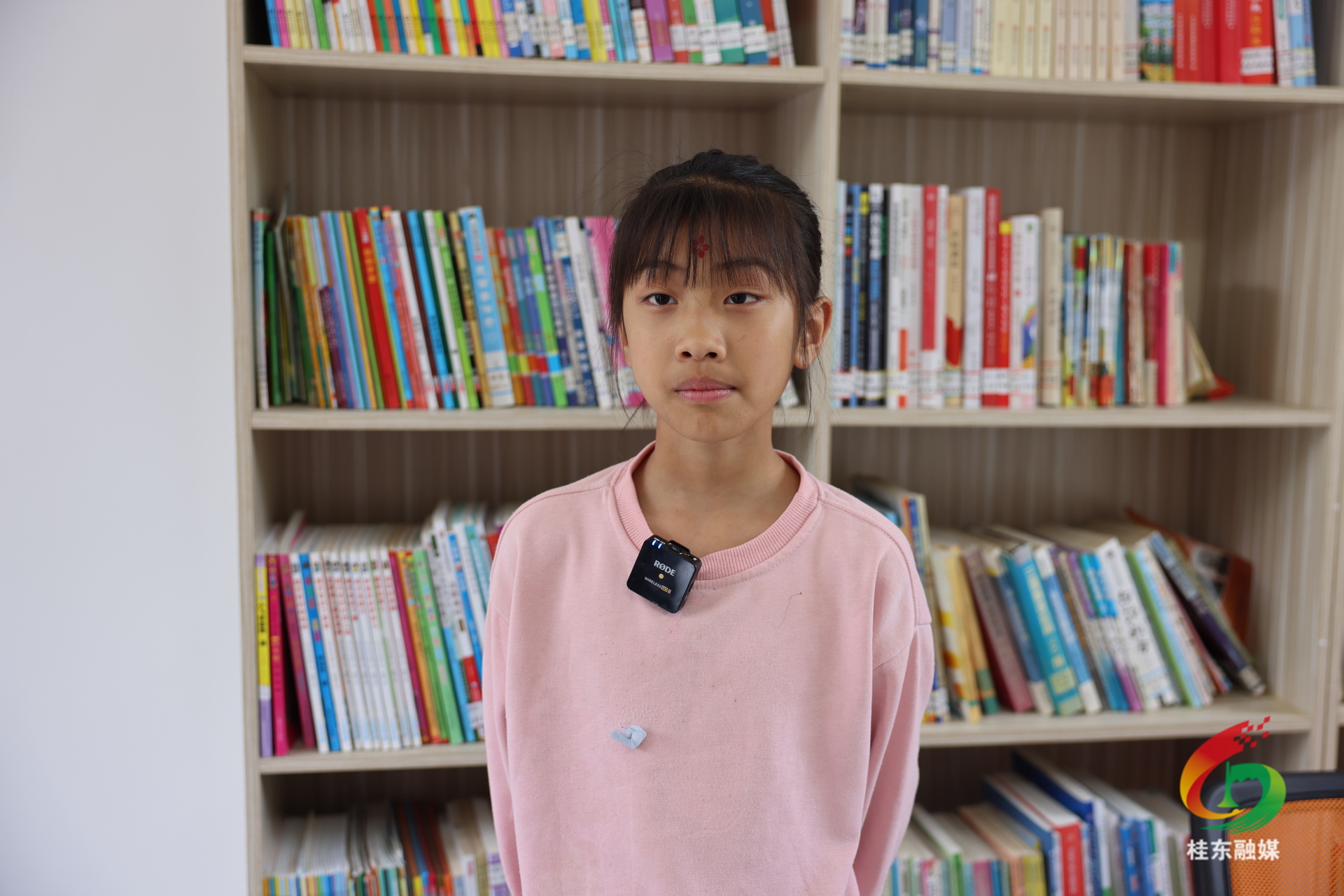 沙田镇大坑村村民郭依琳:周末回家能在书屋看书,在活动室打球,还有新文具,特别开心,和爷爷奶奶一起吃饭,村里热热闹闹的,我觉得特别幸福。