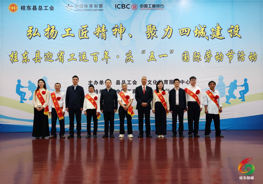 桂东县融媒体中心4月29日讯(记者 黄莎娜)4月28日至29日,我县在县体育馆举行迎省工运百年庆“五一”国际劳动节活动。县领导曹搡、郭远高、邝英健、黄守为出席启动仪式。